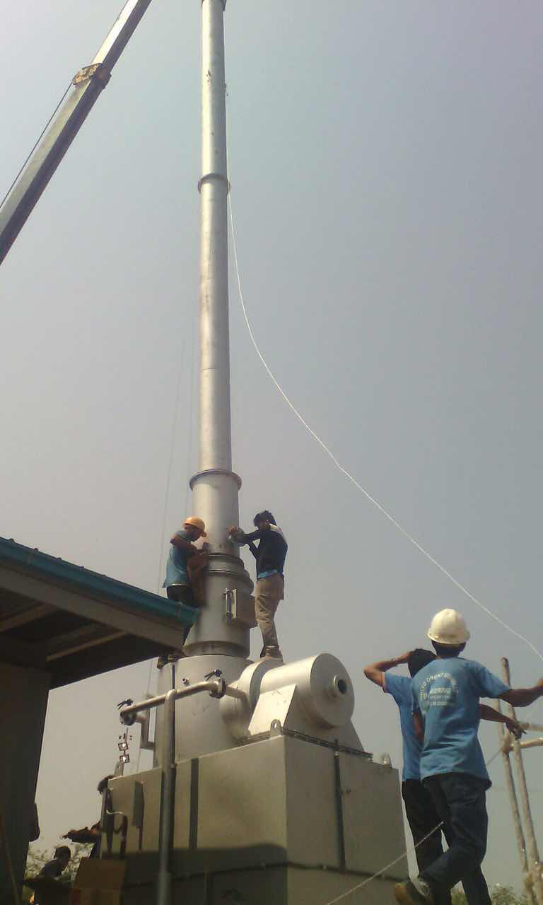 Clover supply optional dust wet scrubber system for waste incinerators. the main parts included wet cooling spray scrubber, wet dust filter and fog&waste separator. This system is valid for mid-large scale waste incinerator, model YD150,YD200,YD300,YD500,YD600. for small scale waste incinerator, supply dry scrubber(filter) chamber.
